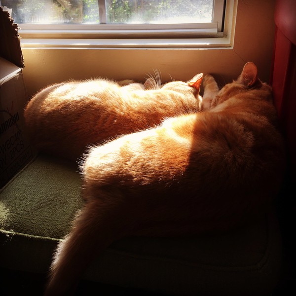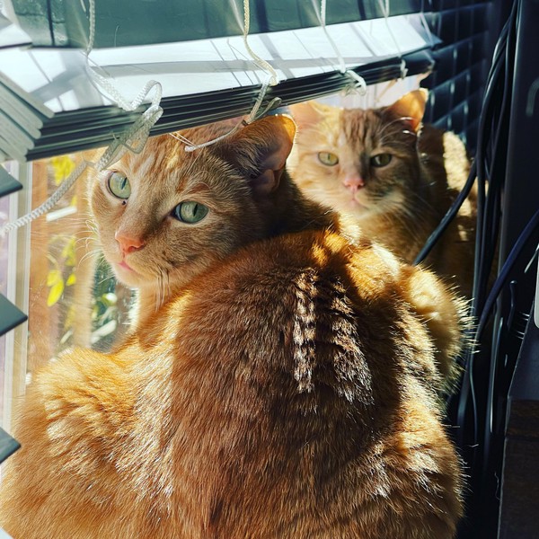 One night several years ago, a group of friends were gathered at my house for dinner. I was in the back of the house on a phone call when I heard a loud commotion coming from the dining room. I rushed to see what was going on and found my two cats, Fred and George, cornering a mouse. My guests were egging them on! Fred was keeping the mouse’s attention while George flanked it, velociraptor style. Clever boy.