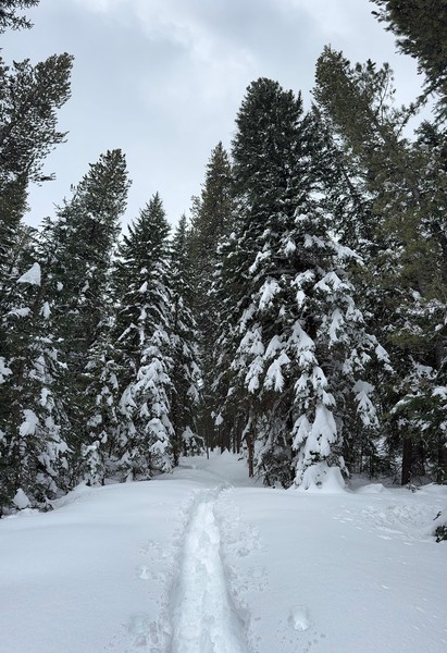 - Snow shoeing is easy going when the trail is well trod. Not so much when you are the one breaking the trail.