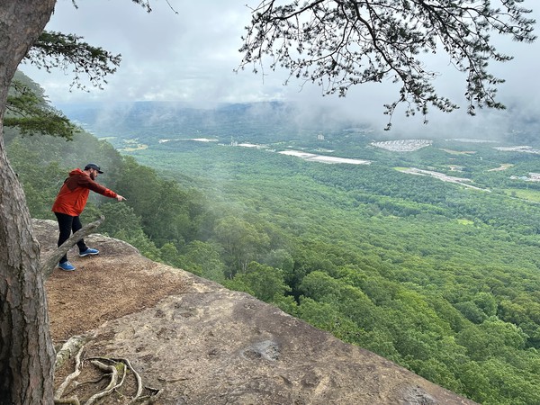 That afternoon, we drove south to Lookout Mountain. We caught a break in the weather so we made the short hike down to Sunset Point. I was glad we did because I got my first glimpse of what Chattanooga has to offer outdoor climbers: a seamingly endless series of stainless steel climbing anchors lined the cliff.